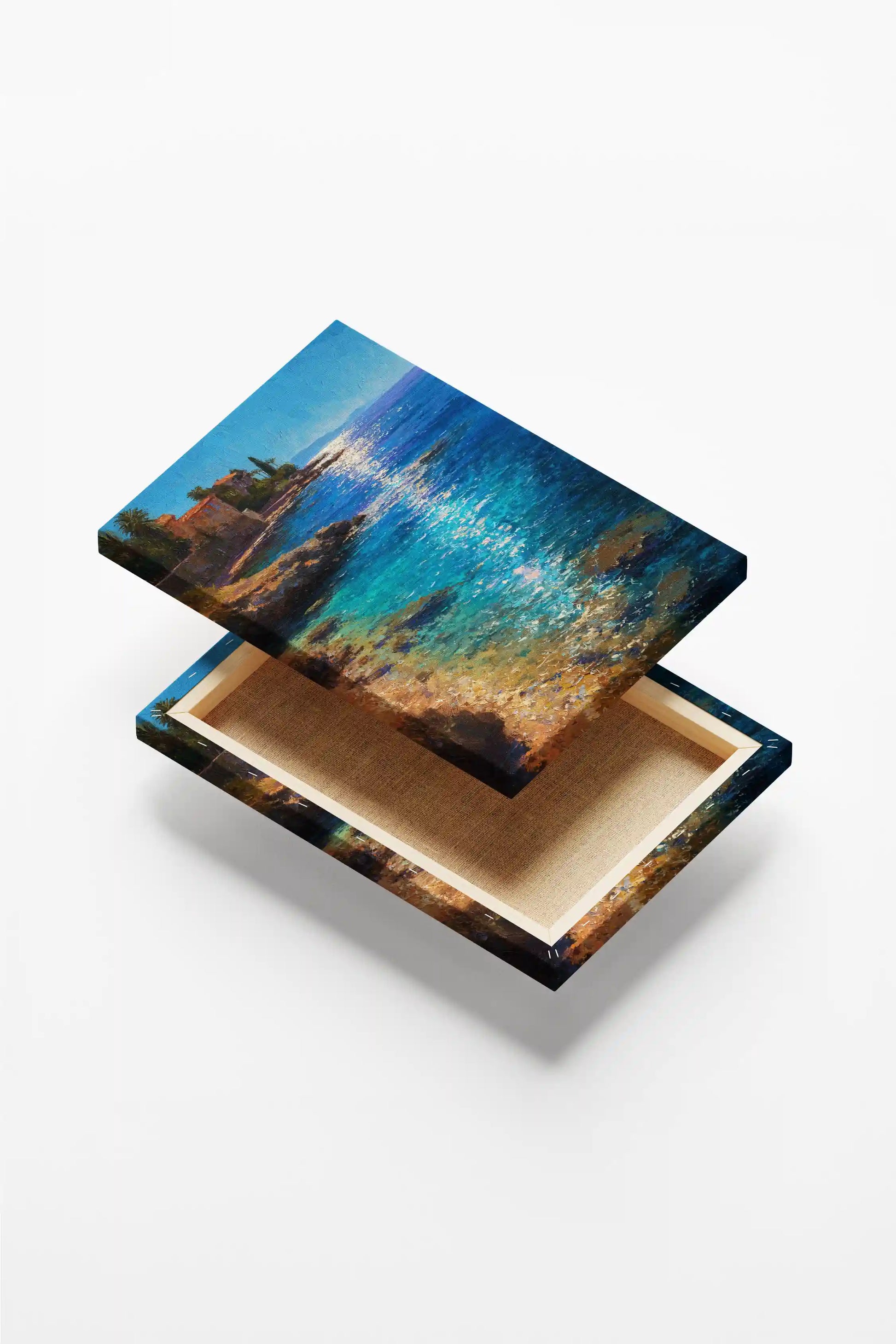Obraz na płótnie stworzony z myślą o wnętrzach, które pragną słońca, koloru i wakacyjnego klimatu. Scena śródziemnomorskiego wybrzeża wnosi do przestrzeni ciepło, lekkość i pozytywną energię.