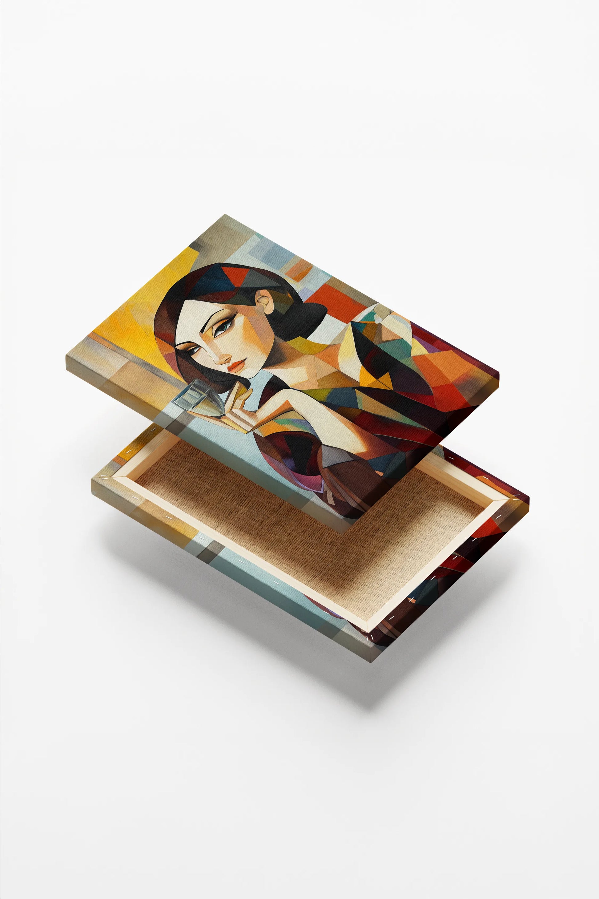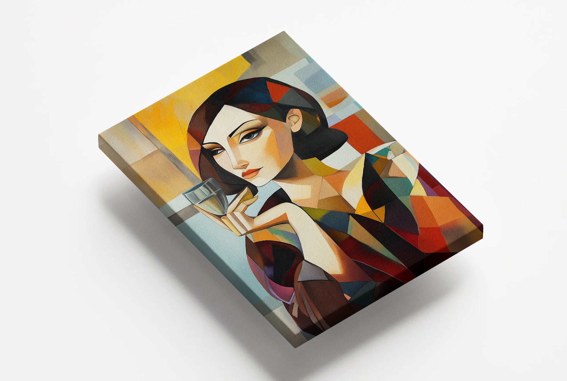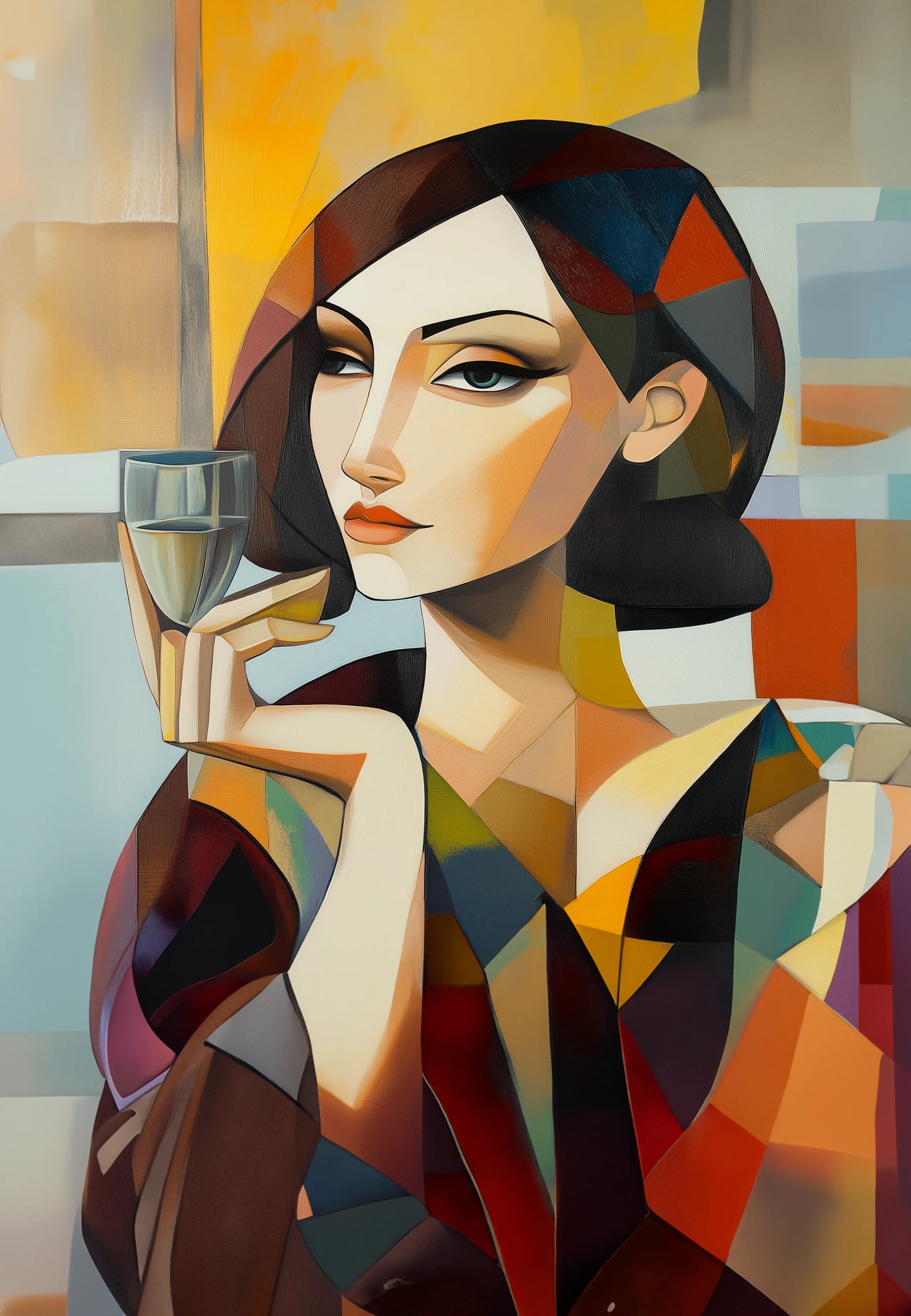 Obraz na płótnie — abstrakcyjny portret z kieliszkiem w stylu kubistycznym
