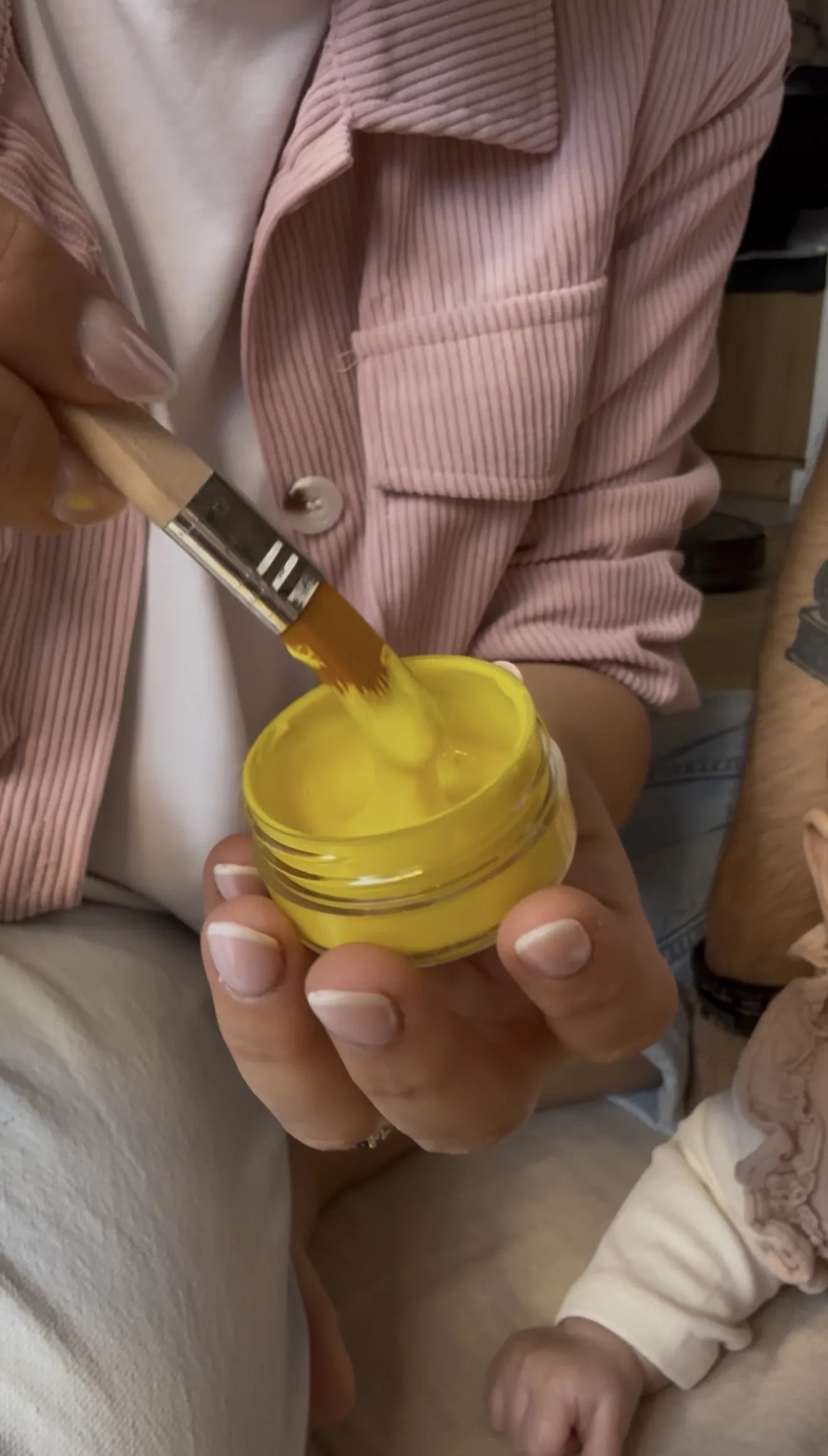 Ten obraz to nie tylko dekoracja — to osobista opowieść o miłości, bliskości i wspólnym tworzeniu. Idealny do pokoju dziecięcego, salonu, kącika rodzinnego czy jako prezent dla młodej mamy — łączy estetykę z emocjonalną wartością.